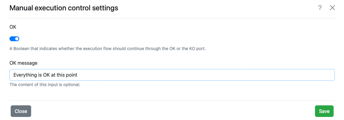 You might need to take control of the execution flow and force the current step to trigger an error by re-routing the execution flow through the KO port. Or you might want to do the exact opposite. Either way, the Manual execution control action is what you're looking for.